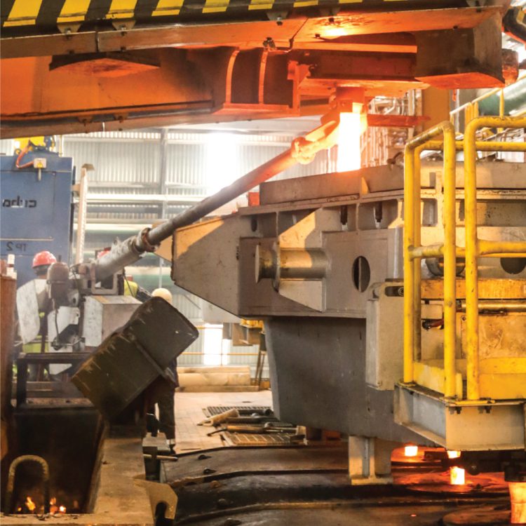 - High Speed Continuous Casting Machine (CCM): Closed casting is maintained at each level which protects the liquid steel from oxidizing and adding impurities (from the surrounding atmosphere) and maintains the quality of the steel.